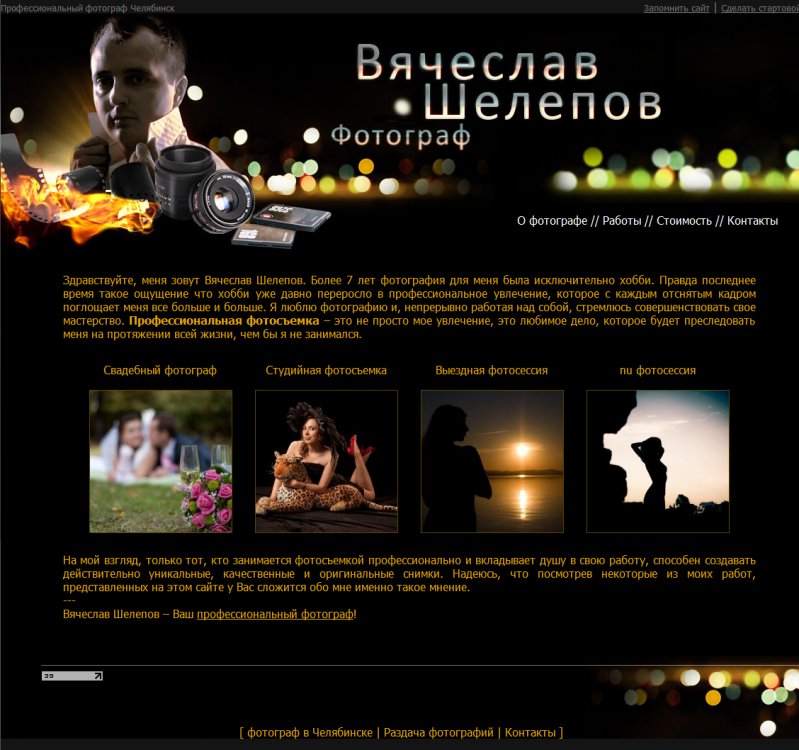 Заявленный функционал сайта позволяет професиональному фотографу Вячеславу Шелепову легко и непринужденно размещать на своем сайте портфолио своих лучший, а также своевременно обновлять его поддерживая актуальность.