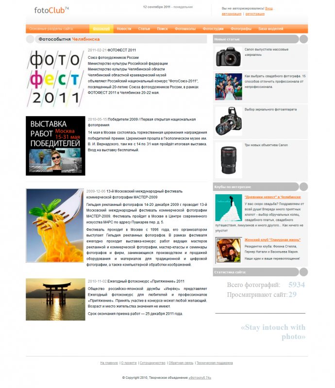 Сайт-сообщество фотографов Челябинска, информационный портал с элементами социальных сетей. Рассказыват о современных тенденциях, технических новинках, новостях и событиях, которые так или иначе связаны с индустрией фотографии.